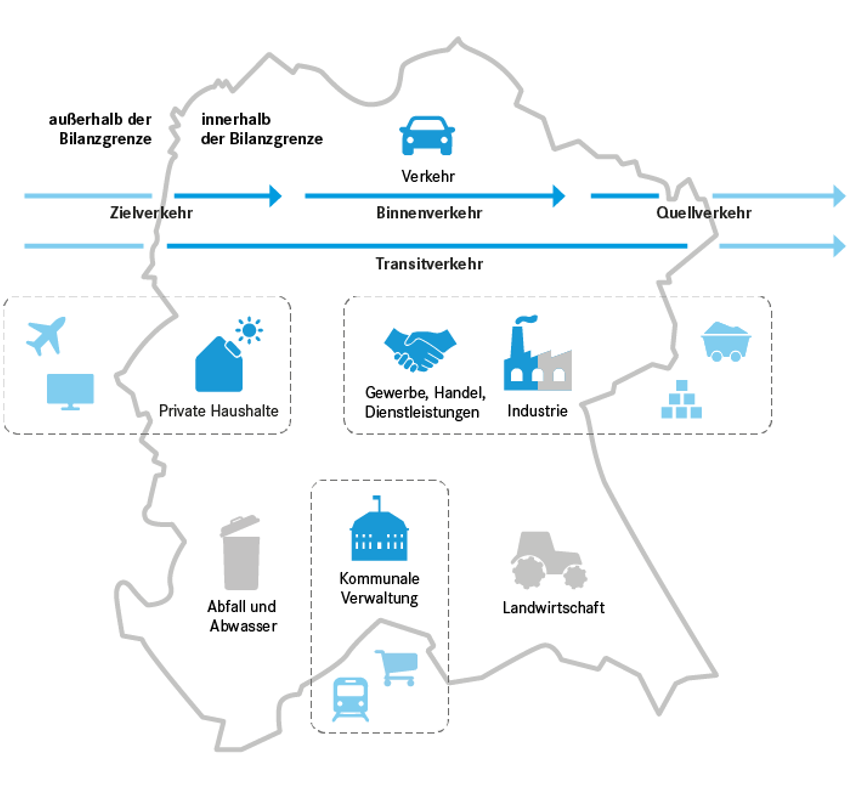 - Territorialprinzip: Alles, was auf dem Gebiet der Stadt Würzburg an CO2äq emittiert wird